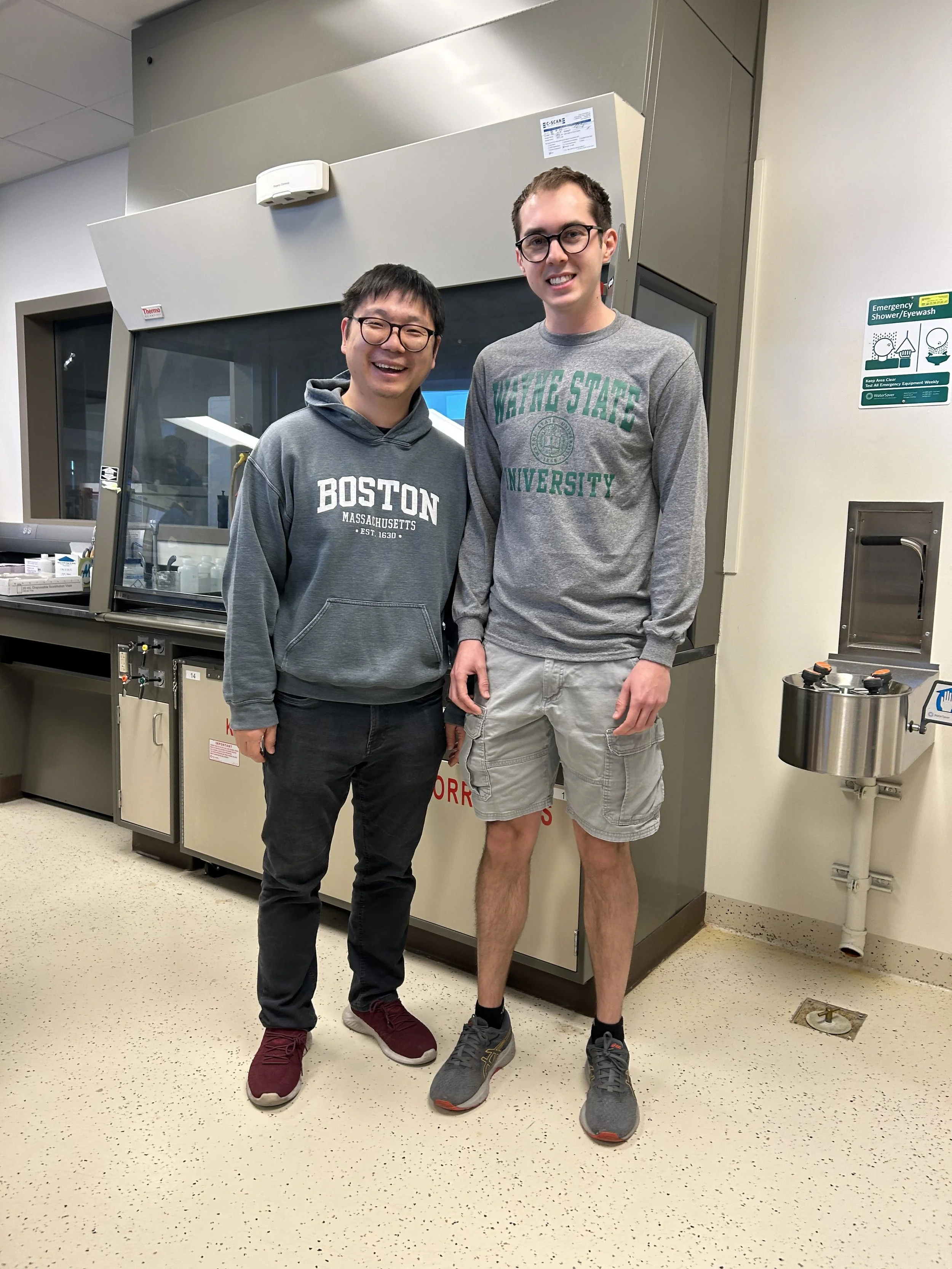 Harrison (visiting student) working in the lab with Marie and presenting his work on proton exchange membranes